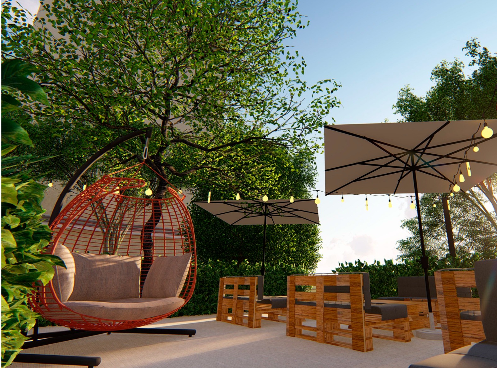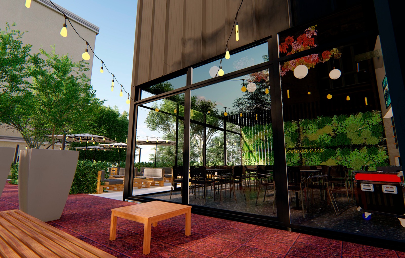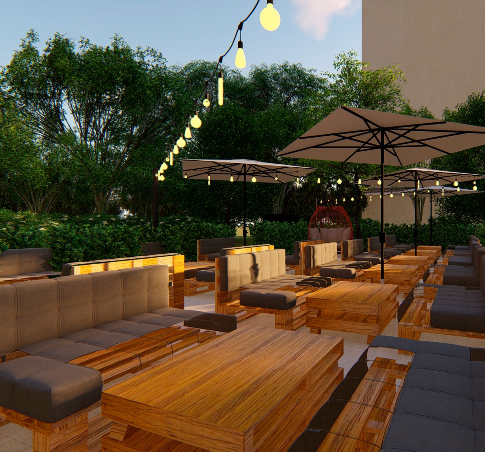 Enquanto o terceiro ambiente – esse diga-se de passagem o mais querido pelos sócios, será um ponto completamente instagramável. Nele, diversos sofás de paletes, mesas de madeira, ombrelones, varal com luzes, muitas árvores e plantas foram distribuídas pelo jardim.